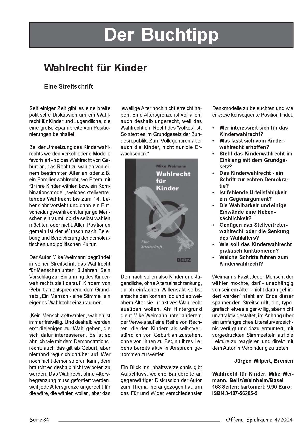 Rezension in "Offene Spielräume" Heft 4(2004), S. 34 - Zeitschrift des