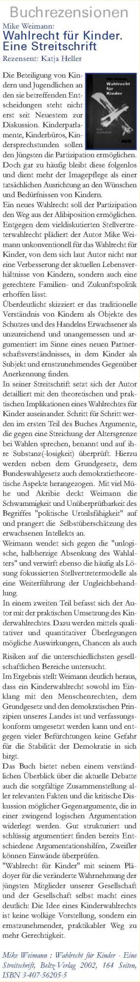 Rezension in "Generationengerechtigkeit!" Heft 1(2004), S. 29 - Zeitschrift der